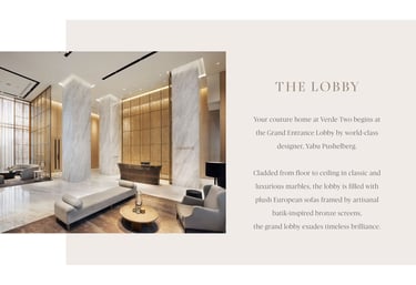 Verde Two adalah hunian mewah yang menawarkan fasilitas modern untuk gaya hidup kota yang dinamis dan memenuhi kebutuhan bisnis serta hiburan.